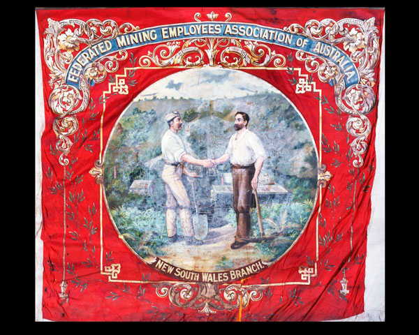An exhibition of union banners , badges and other artefacts has been installed at the State Mine Museum, State Mine Gully Road, Lithgow. This exhibition will be in place until the end of October 2009. It includes large banners used in street parades that form part of the Sydney Trades Hall collection. Many of these items have not been accessible to the public before as there has been no space large enough to exhibit them.